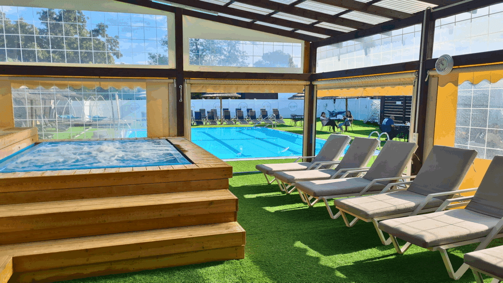 מתחם מקורה עם בריכות וג'קוזי ישיבה
